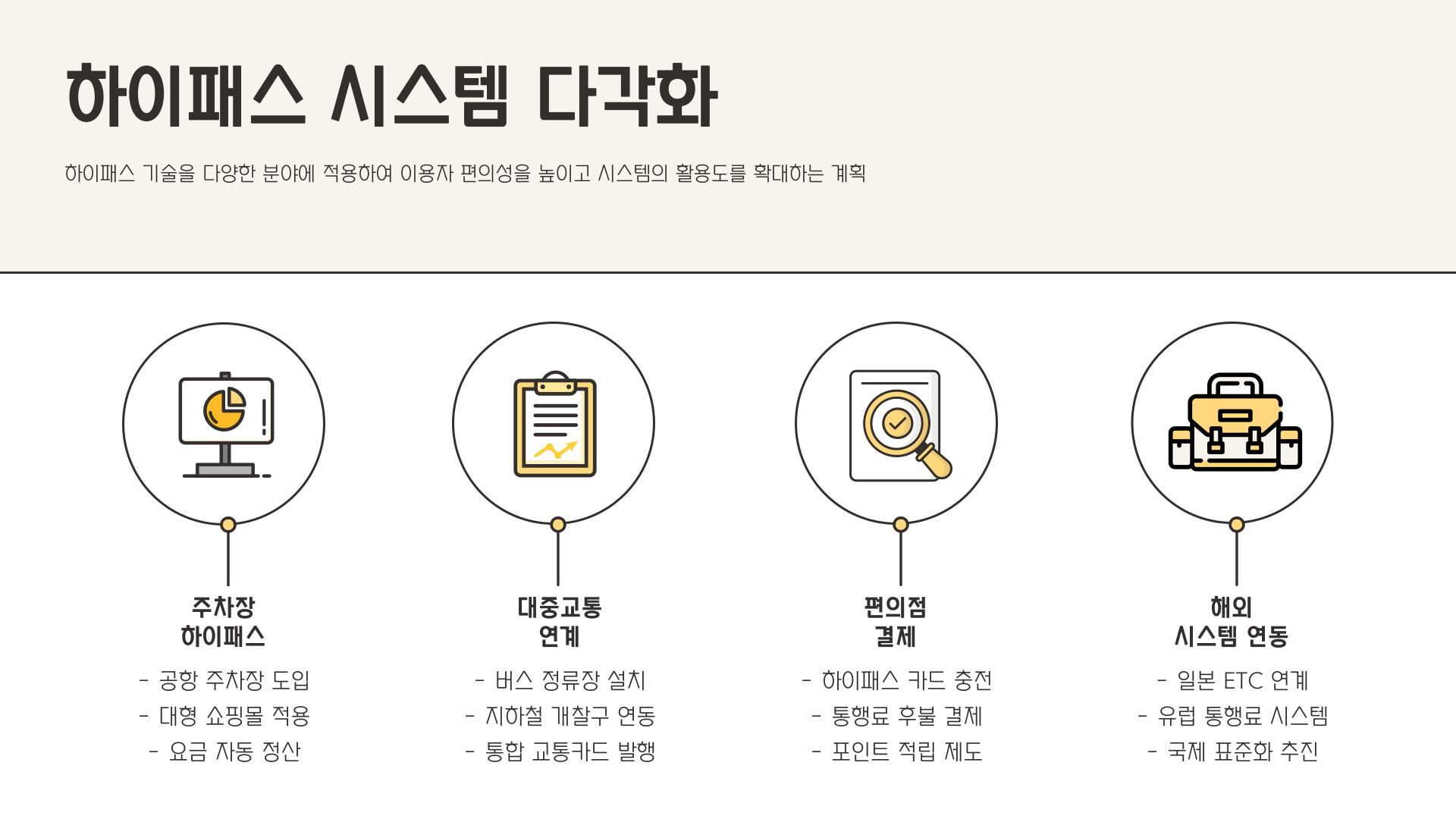 - 하이패스는 고속도로 통행료를 간편하게 납부하는 시스템입니다.