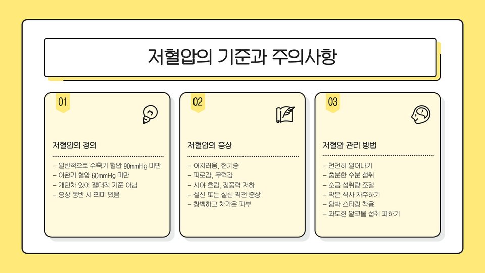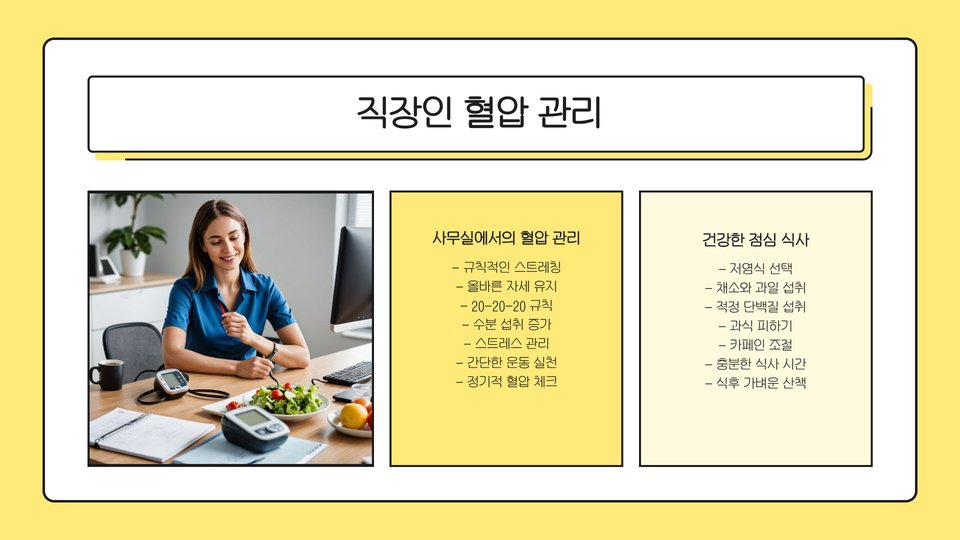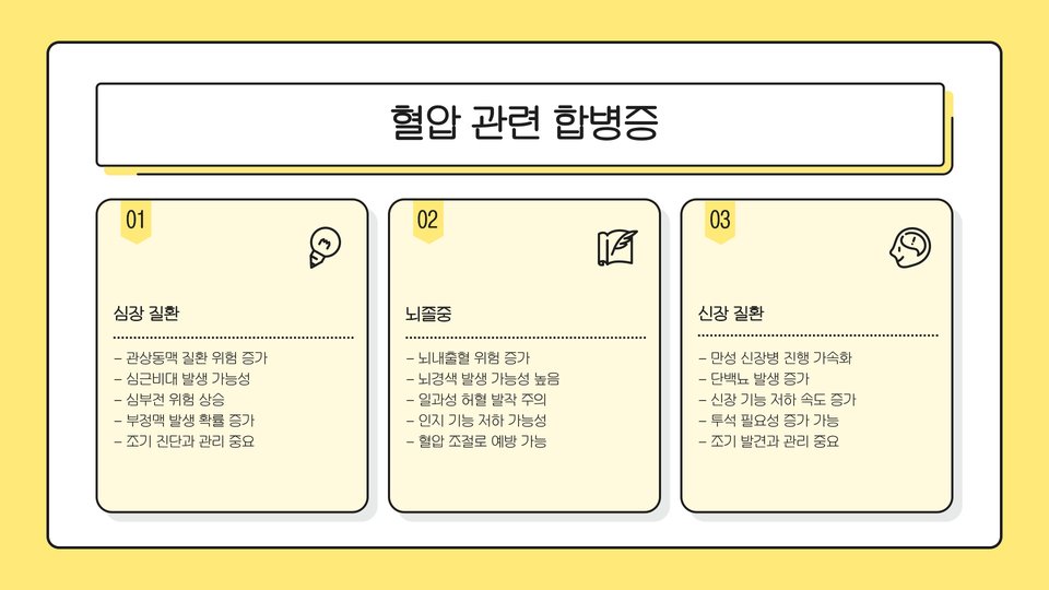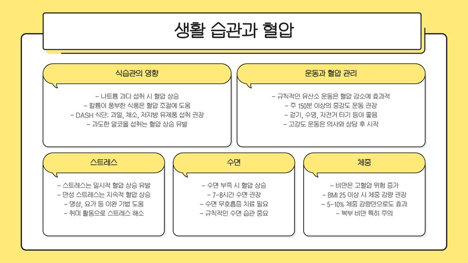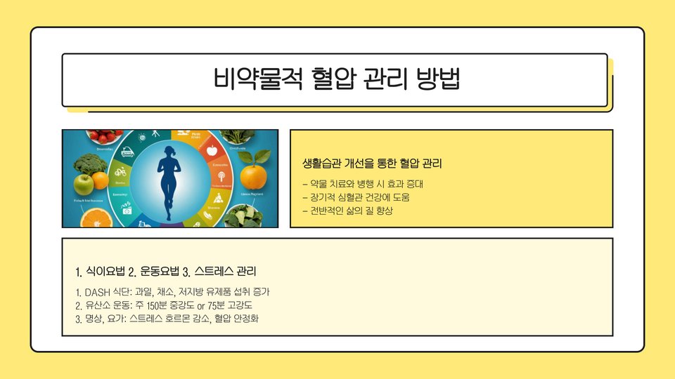 - 정기적인 혈압 측정과 생활습관 변화가 중요하다.