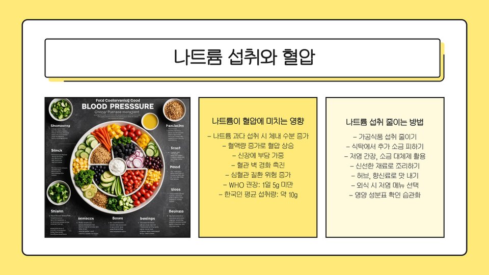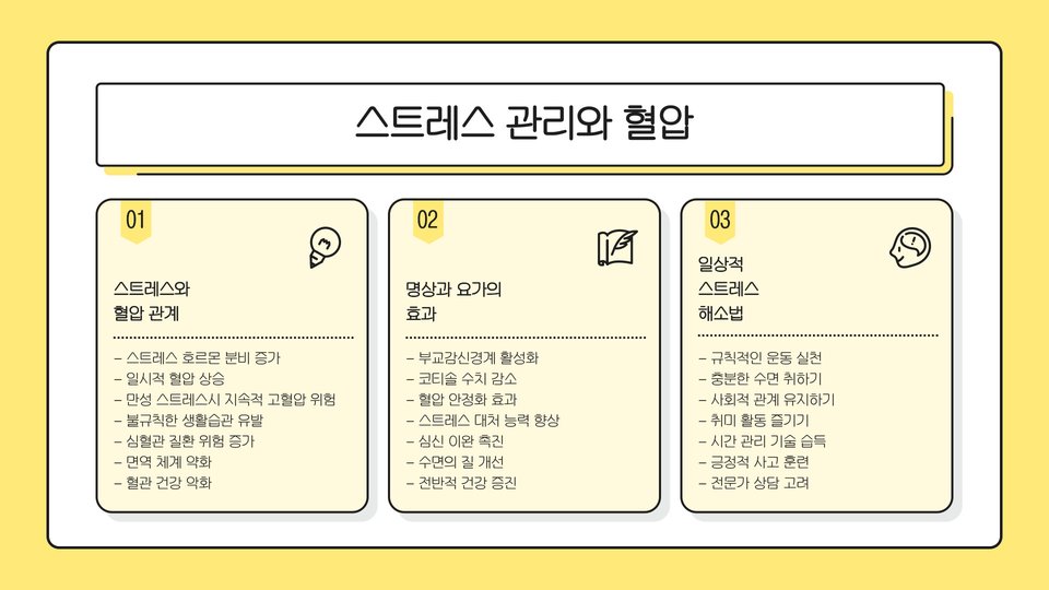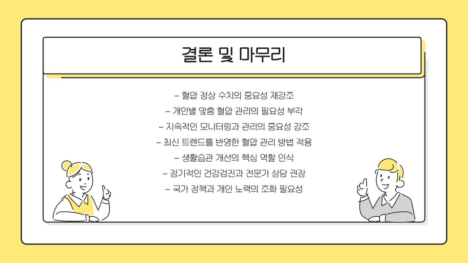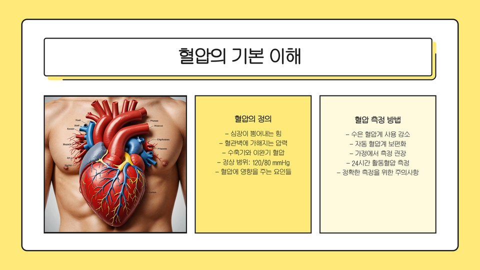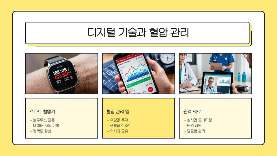 - 정기적인 혈압 측정과 생활습관 변화가 중요하다.
