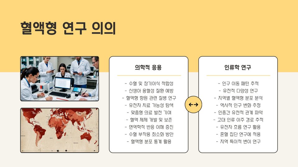 확실히 혈액형은 단순히 생리적인 특성일 뿐만 아니라 유전적인 요소와도 관계가 있습니다. 예를 들어, 특정 혈액형이 특정 질병에 걸리기 쉬운 경향이 있다고 밝혀진 연구 결과도 있습니다. 이러한 혈액형에 따른 질병의 유전적 경향성은 개인의 건강 관리와 생활 습관에 영향을 줄 수 있으므로, 자신의 혈액형을 아는 것은 매우 중요합니다.