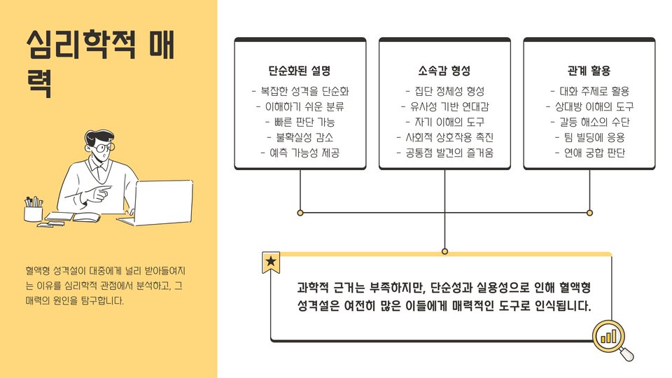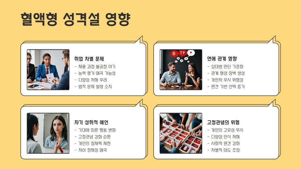 - 각 혈액형은 특정 성격적 특징을 가짐