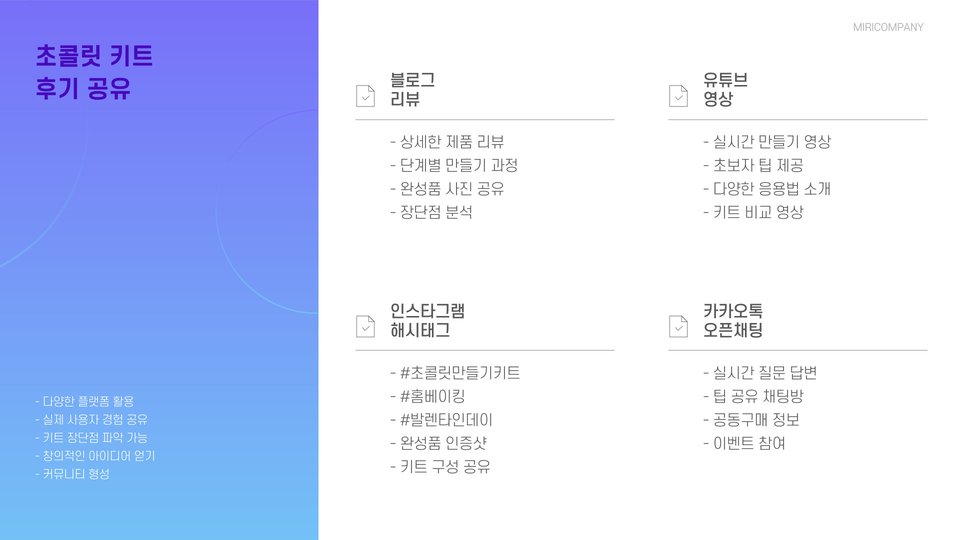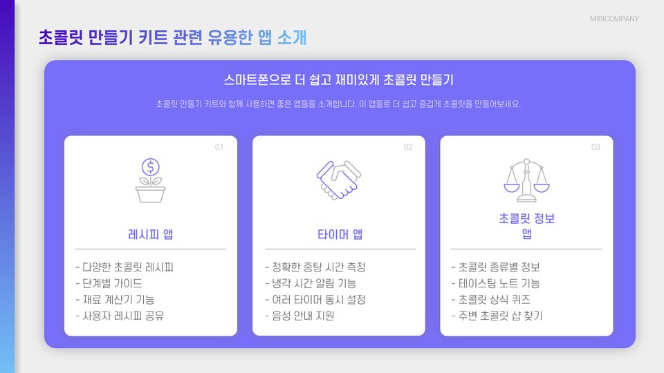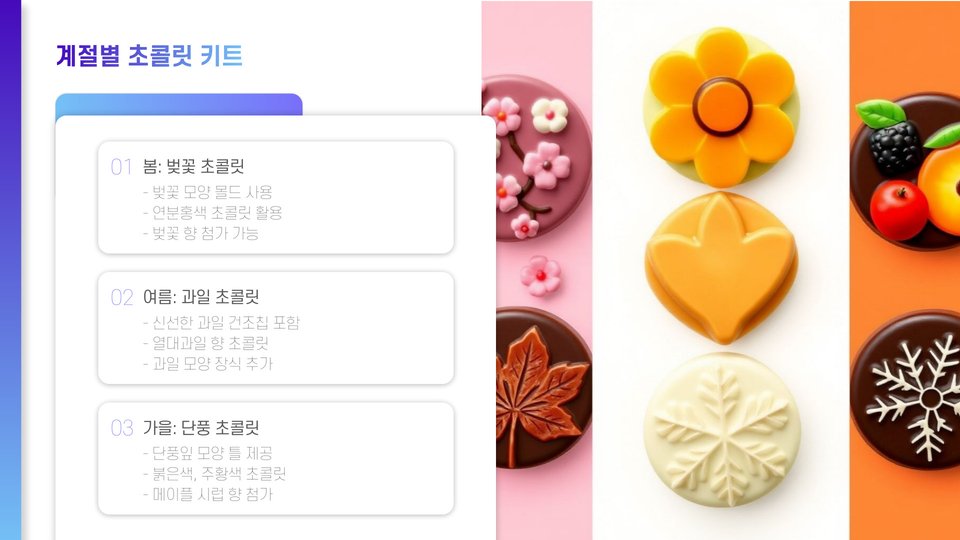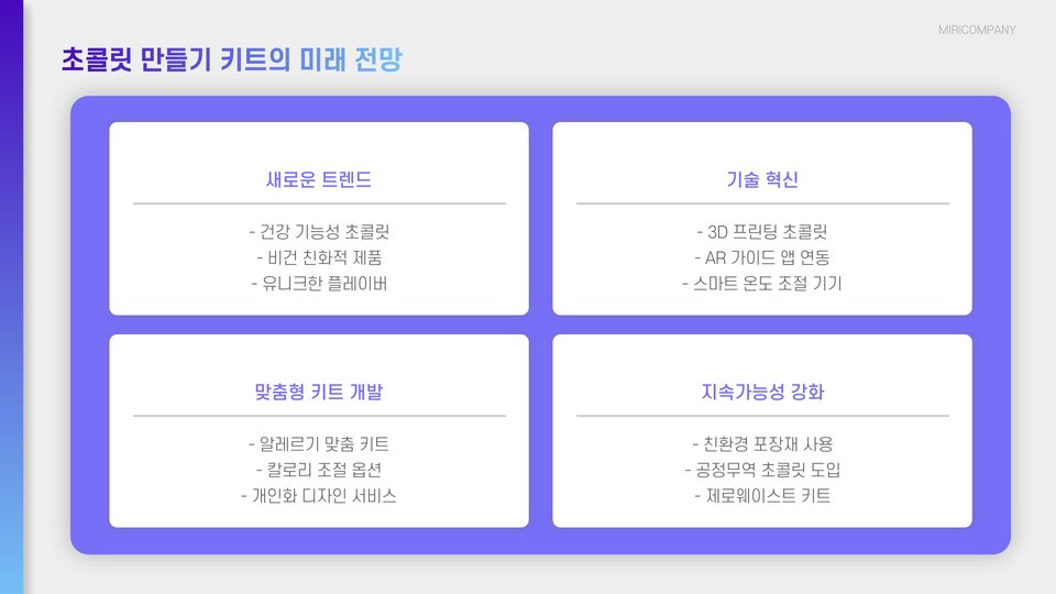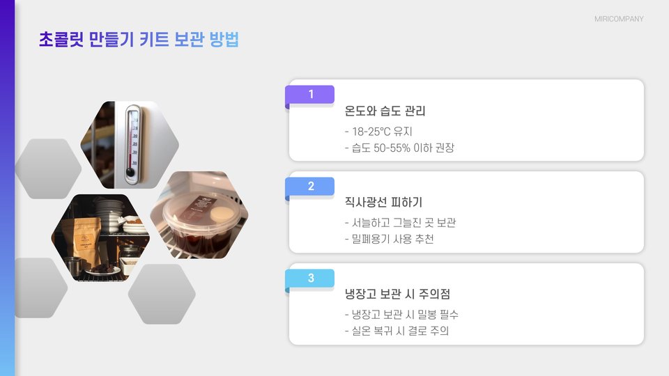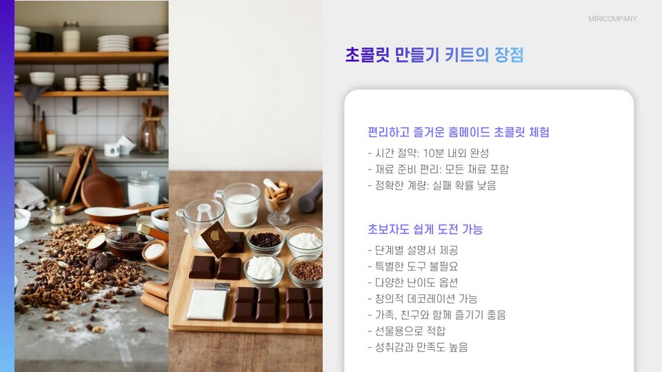 - 초콜릿 만들기 키트는 간편하고 창의적인 방식으로 초콜릿을 만들 수 있다.