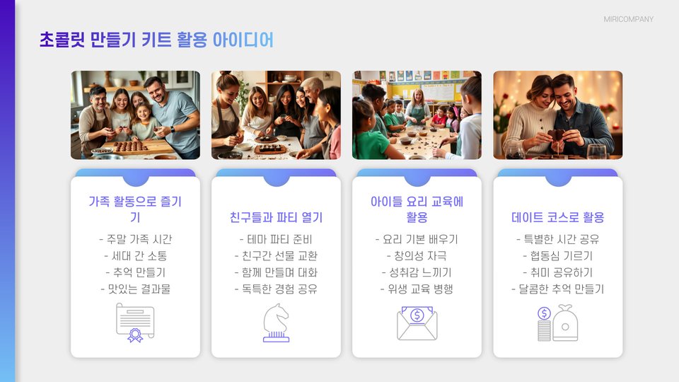 - 초콜릿 만들기는 창의성과 소통을 즐길 수 있는 활동입니다.