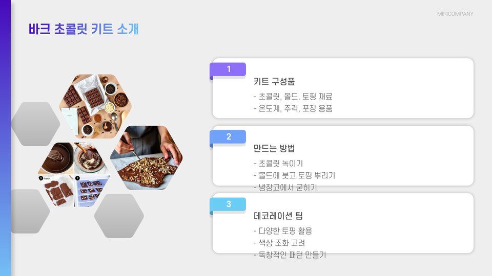 - 10분 만에 만들 수 있는 초콜릿 키트를 활용하세요.