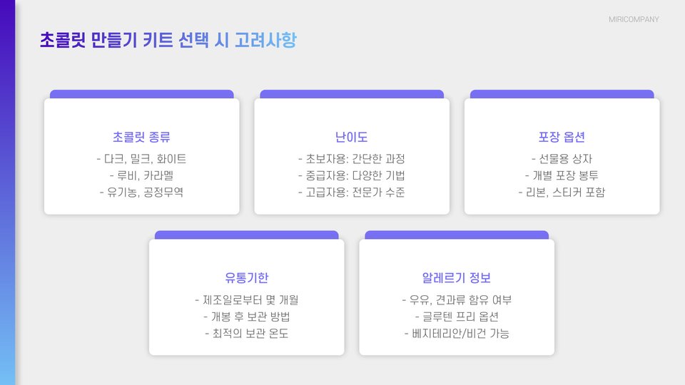 - 초콜릿 만들기 키트는 간편하고 창의적인 방식으로 초콜릿을 만들 수 있다.