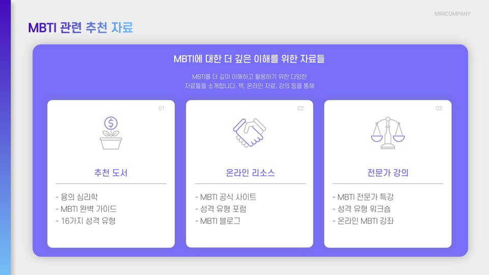 MBTI 검사를 통해 자신을 이해하고, 더 나은 관계를 형성하며, 직업 선택에 긍정적인 영향을 미칠 수 있습니다. 이 정보가 여러분에게 도움이 되길 바랍니다!