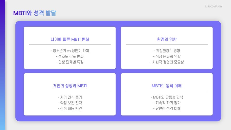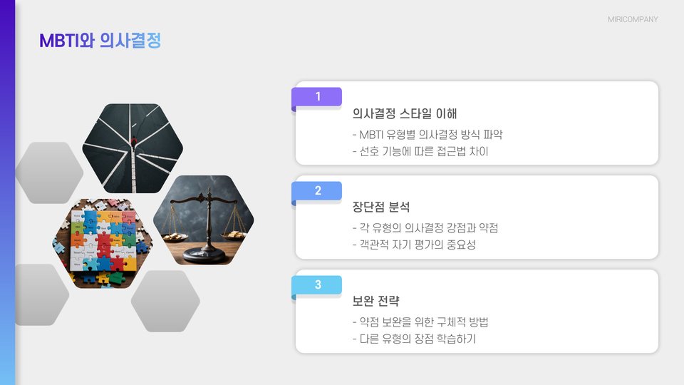 - 자기 이해 증진: 자신의 성격을 이해함으로써 더 나은 결정을 내릴 수 있습니다.