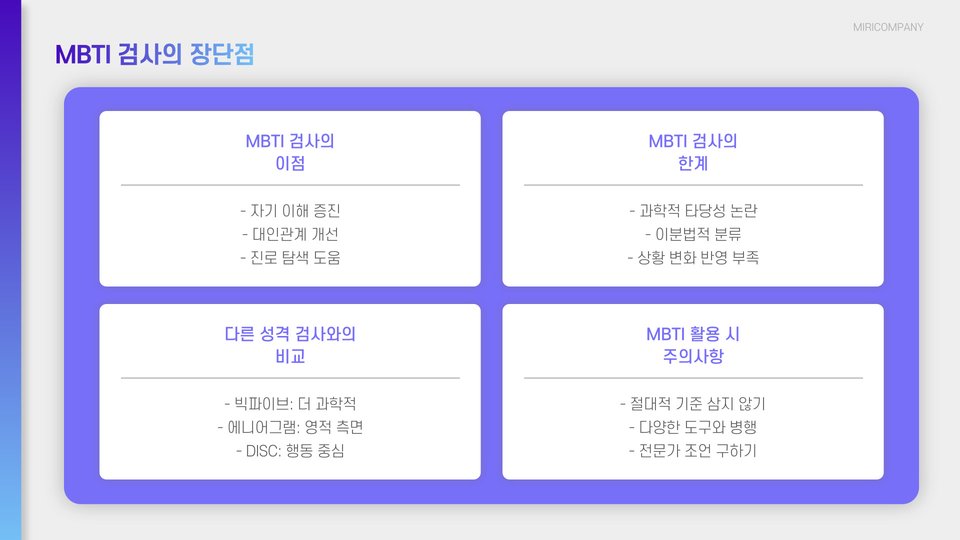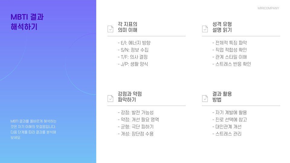 - MBTI 검사는 성격 이해의 도구