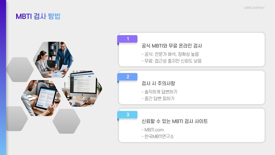 - MBTI 검사는 인터넷에서 쉽게 진행할 수 있습니다.