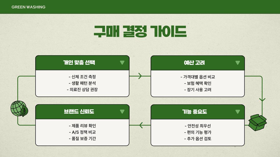 - 안전성, 내구성, 사용 편의성, 가격을 고려해야 함