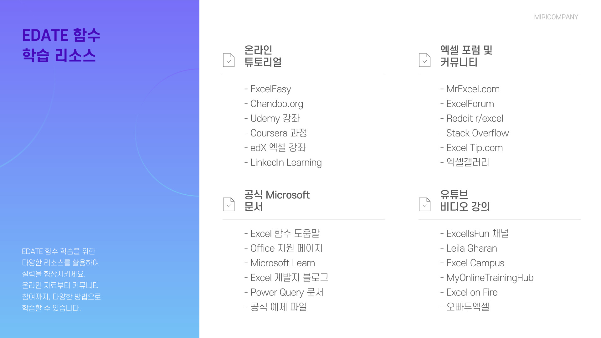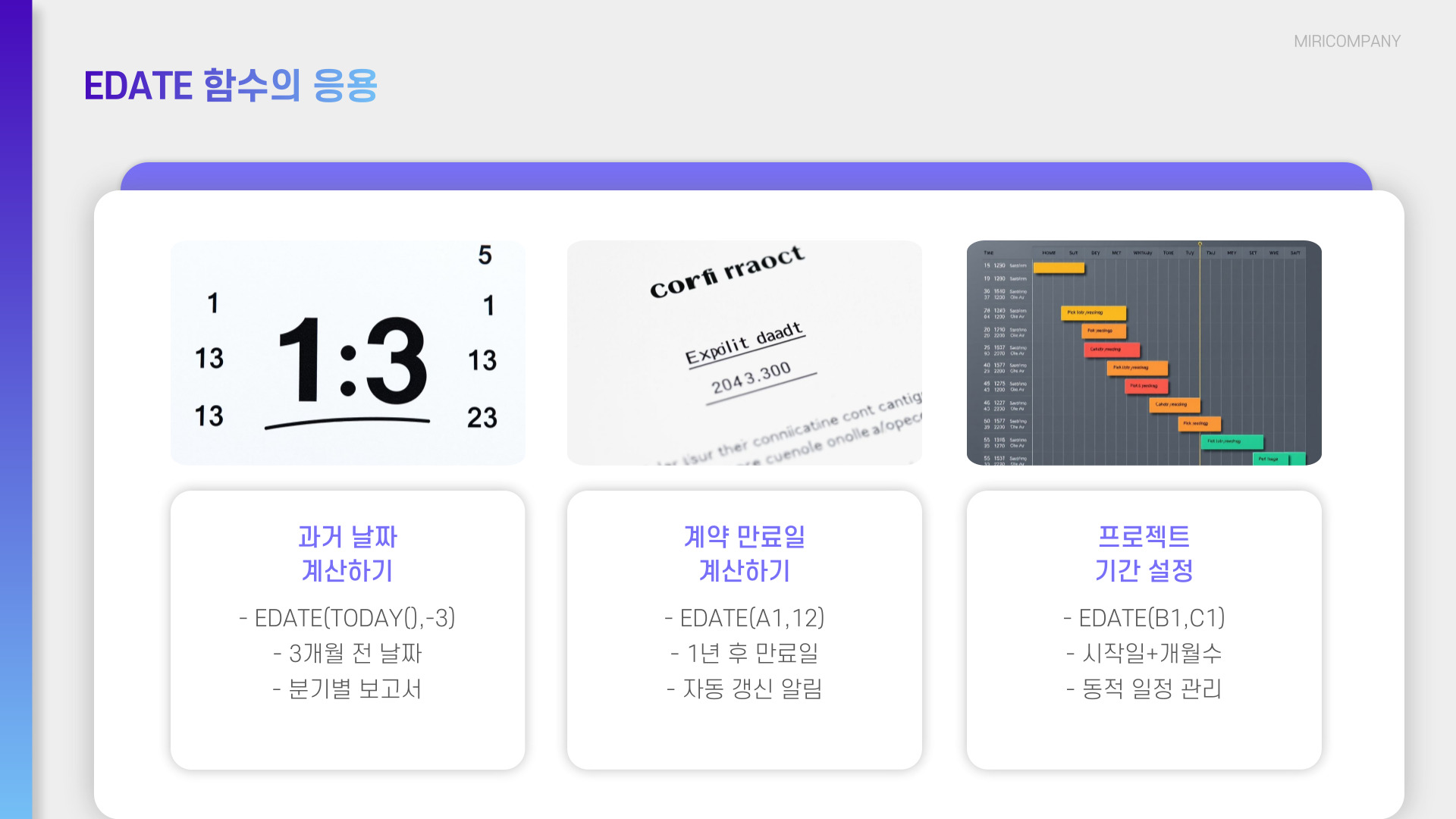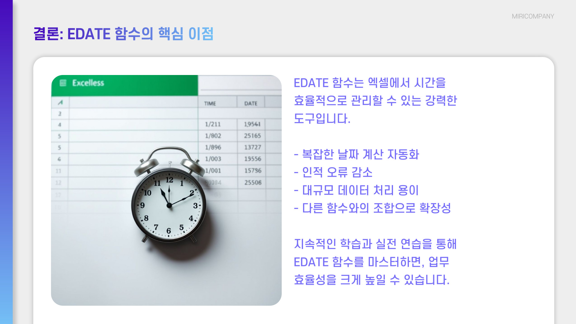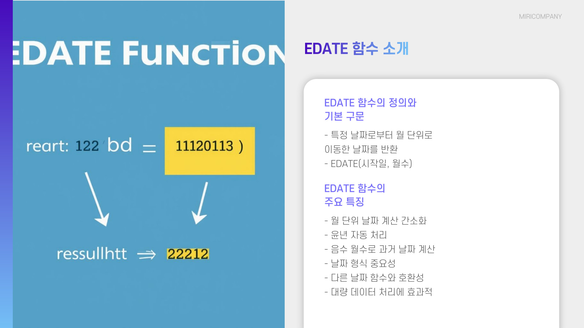 - EDATE 함수는 날짜 계산의 효율성을 높임