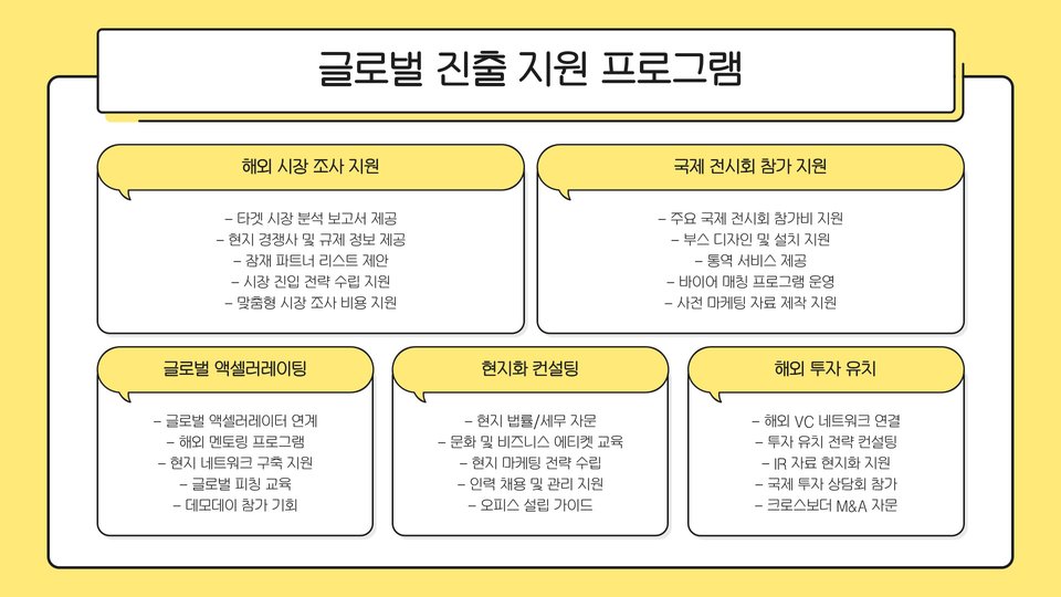 - 자금 지원: 초기 창업 비용을 지원하기 위한 다양한 자금 지원 프로그램이 마련되어 있습니다.