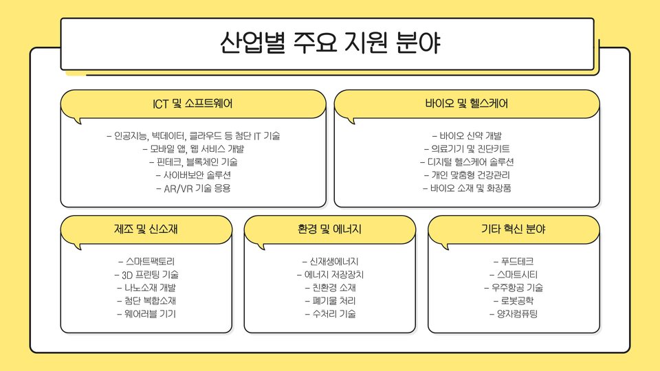 - 사업화 지원: 사업 아이디어를 실제 제품이나 서비스로 발전시키기 위한 지원을 받을 수 있습니다.