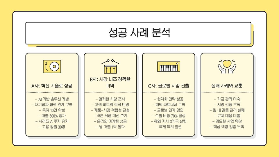 - 시장 조사와 네트워킹은 성공적인 창업을 위한 필수 요소입니다.