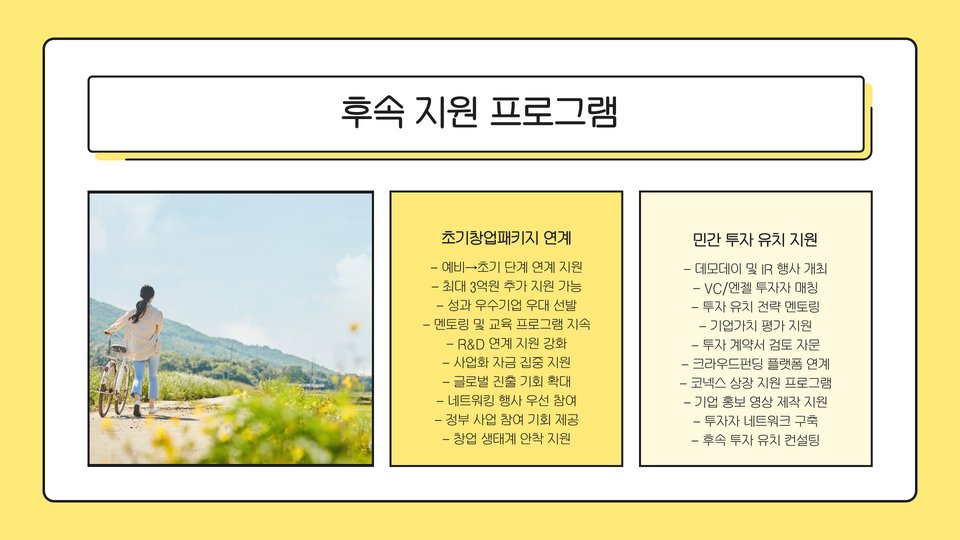 - 재정 지원을 통해 초기 자본 조달을 원활하게 지원함.