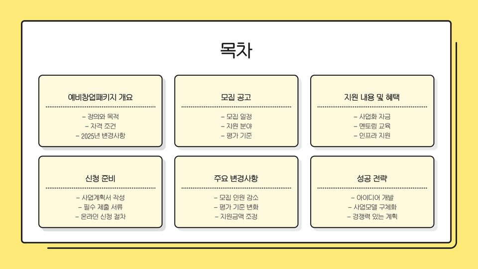 - 2025년 예비창업패키지 프로그램은 창업 교육과 멘토링을 강조함.