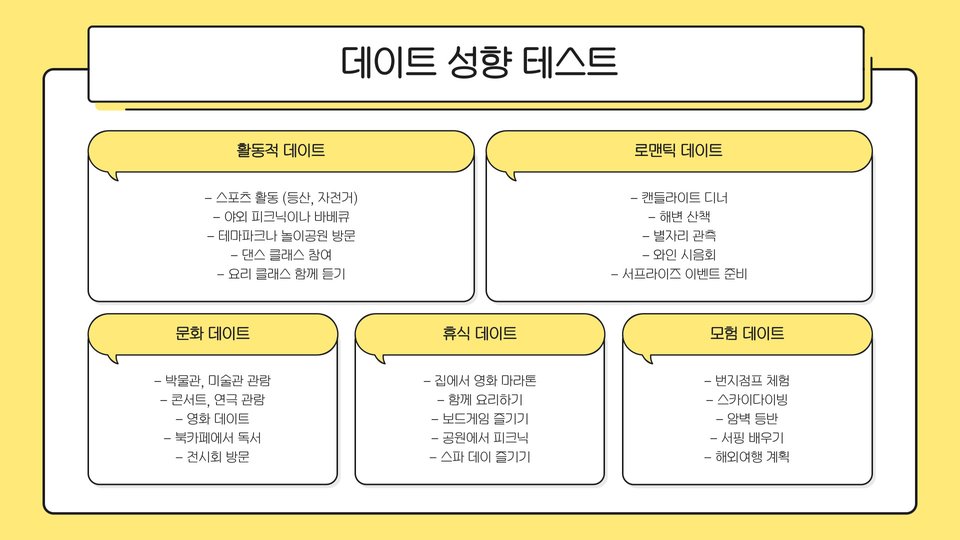 커플 궁합은 단순한 테스트 결과 이상의 의미를 지닙니다. 서로의 차이를 이해하고, 그 차이를 존중하는 것은 건강한 관계를 유지하는 데 필수적입니다. 무료 커플 궁합 테스트를 통해 얻은 결과는 재미로 받아들이되, 진정한 이해와 소통을 통해 관계를 발전시켜 나가는 것이 중요합니다.