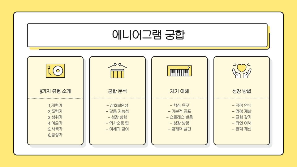- 각종 심리적 요소와 성격 유형을 통해 관계의 강점과 약점을 파악합니다.