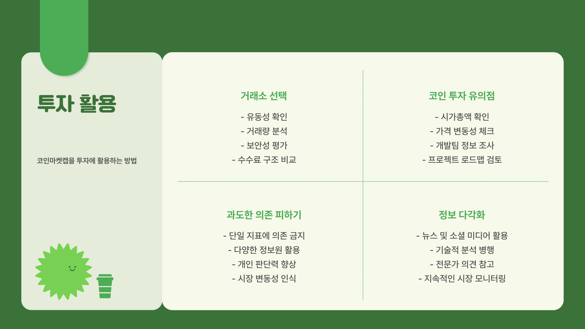 - 거래소 선택 시 신뢰성과 고객 지원 서비스 필요